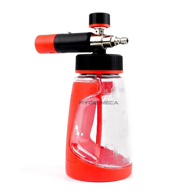 Snow master V2 possède un double filtage afin de raccorder différents flacons tels que les bouteilles de 500ml et autres avec un fietage 28/400. La bouteille transparente vous aide à obtenir une dilution parfaite. La structure interne a été améliorée, le tube et filtres mis à jour, résultant en une mousse plus dense et plus stable.